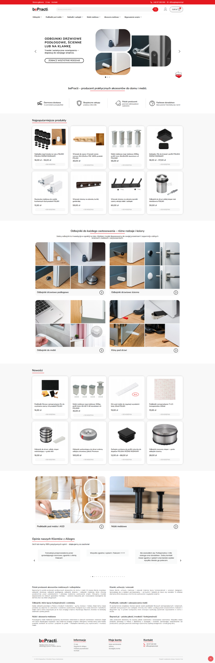 Klient, który sprzedawał już na Allegro, postanowił rozwijać swoją markę poprzez własny sklep internetowy. Zależało mu na prostym, spójnym wyglądzie – zbliżonym do Allegro – dlatego przygotowałem sklep i zaimportowałem do niego ponad 3000 produktów bezpośrednio z platformy.